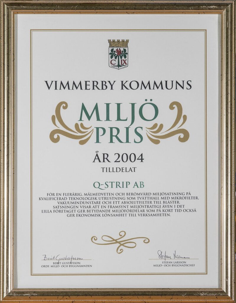 QStrip blev utsedd till årets miljöpristagare 2004 av Vimmerby Kommun.